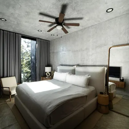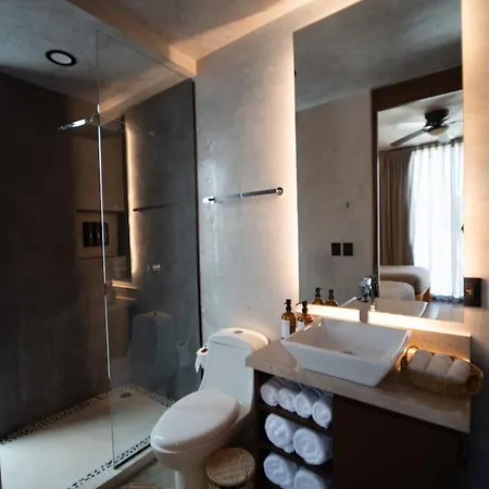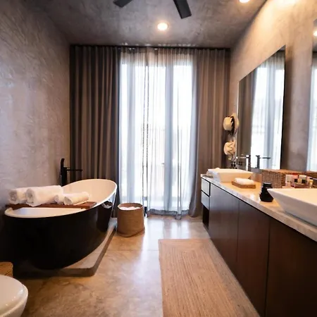 Die Fenster der Villa bieten einen Blick auf den Garten. Die Unterkunft in Tulum verfügt über ein Badezimmer mit einer Badewanne, einer getrennten Toilette und einer Dusche. Ein Haartrockner, Morgenmäntel und Badelaken werden auch angeboten.